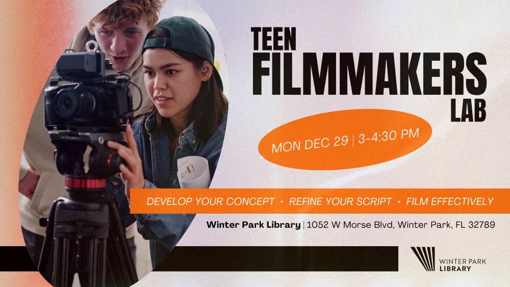 New this year! Register for the Winter Park Library's Teen Filmmakers Lab on Monday, December 29 from 3–4:30pm. Click here to register today!